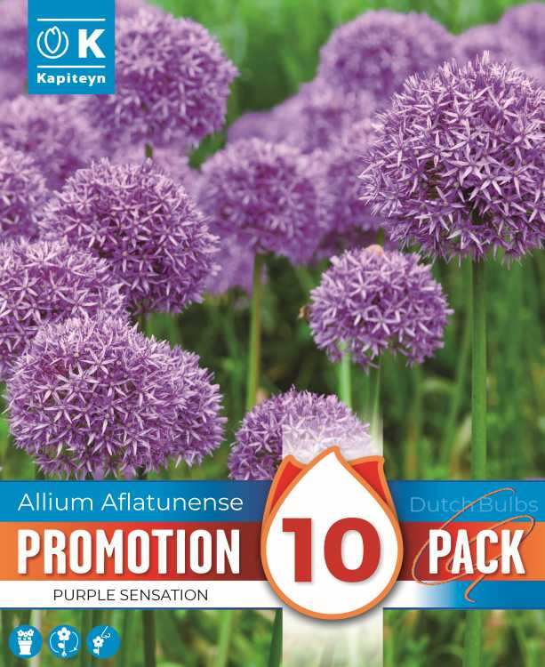 Az Allium aflatunense ‘Purple Sensation’ a legismertebb díszhagymák közé tartozik. Magas szára (kb. 80 cm) végén tökéletes gömb alakú virágzat díszlik, ragyogó lila színben. Jól társítható évelőkkel, virágágyások fókuszpontja lehet. Az akciós kiszerelés kiváló választás nagyobb felületekhez.Ültetési és gondozási útmutató:– Ültetési idő: szeptember–november– Ültetési mélység: 12–15 cm– Fényigény: teljes napfény– Virágzási idő: május vége – június eleje– Talaj: jó vízelvezetésű, laza– Gondozás: Ültetés után ne mozgassuk, éveken át ugyanott virágozhat. A virágzás után a magtok is dekoratív.Ajánlott társítás:Díszfüvek, zsálya, díszpipacs, rózsák.