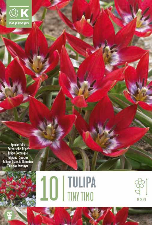 A ‘Tiny Timo’ egy modern nemesítésű törpe botanikai tulipán, amely kivételesen alacsony termetű, mégis élénk, narancsos-rózsaszínes virágzattal örvendeztet meg. Egyedi megjelenése és különlegessége miatt gyűjtők kedvence, kis edénybe, sziklakertekbe ajánlott.Ültetési és gondozási útmutató:– Ültetési idő: szeptember–november– Ültetési mélység: 6–8 cm– Fényigény: napos, meleg fekvés– Virágzási idő: április eleje– Gondozás: Jól vízáteresztő talajt és teljes napfényt igényel. Kifejezetten érzékeny a pangó vízre.Ajánlott társítás:Más miniatűr tulipánfajtákkal vagy törpe íriszekkel kombinálva különösen egyedi.