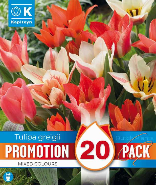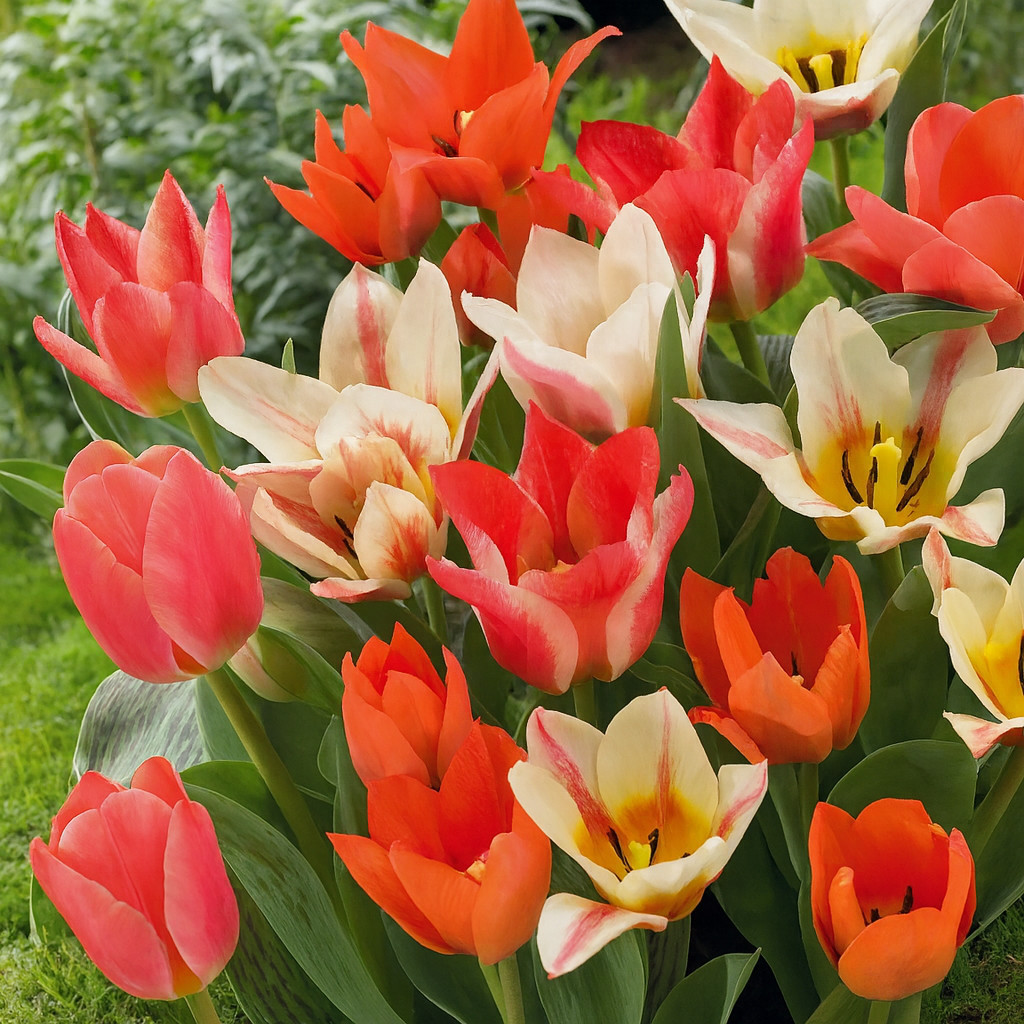 A botanikai tulipánok kis termetűek (15–25 cm), természetes kertstílushoz vagy gyepbe ültetéshez ideálisak. Korán, akár február végén is nyílnak. Ez az akciós kiszerelés vegyes színű és virágformájú fajtákból áll, melyek kiválóan alkalmasak tömeges telepítésre.Ültetési és gondozási útmutató:– Ültetési idő: szeptember–november– Ültetési mélység: 8–10 cm– Fényigény: napos hely– Virágzási idő: február vége–március vége– Talaj: jól vízelvezető, szárazabb helyet kedvel– Gondozás: Tartós, újra virágzó, természetesen elszaporodó tulipánfajták. Évelőként viselkednek, nem igényelnek felszedést.Ajánlott társítás:Krókuszokkal, hóvirággal, tavaszi kankalinnal.