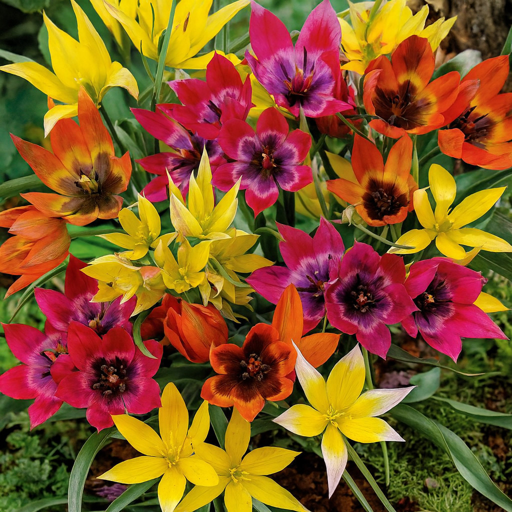 Válogatás a legszebb botanikai tulipánokból: korai virágzás, természetes hatás, sokféle szín és forma.