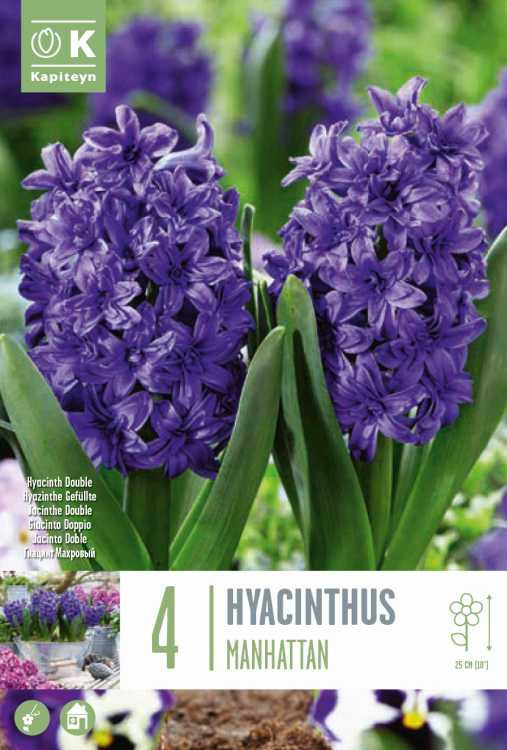 A ‘Manhattan’ jácint telt, mély lilás virágai karakteres megjelenést kölcsönöznek a kertnek vagy balkonládának. Illata rendkívül kellemes, virágai hosszú ideig tartanak, különösen hűvösebb időben.Ültetési és gondozási útmutató:– Ültetési idő: szeptember–november– Ültetési mélység: 10–12 cm– Fényigény: napos, félárnyékos hely– Virágzási idő: március–április– Gondozás: Ültetés után alaposan öntözd be. A virágzás után hagyd a lombot leszáradni. Télen takarással védd az érzékeny hagymákat, ha cserépben tartod.Ajánlott társítás:Sötét színű tulipánokkal, például ‘Queen of Night’ fajtával igazán drámai hatást érhetünk el.