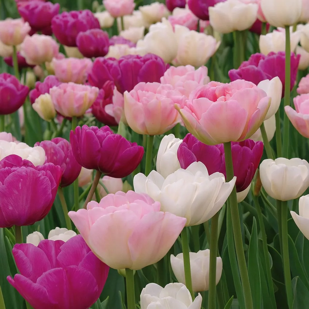 Tulipa Double Mix ‘Pink, Purple & White’ – Teltvirágú tulipánmix rózsaszín, lila és fehér árnyalatokban (15 db virághagyma)