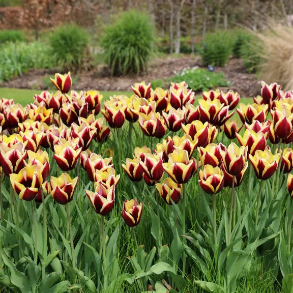 Nagyon jelentős a legnagyobb területen termesztett csoport. Egyszerű virágú korai, és a régebbi darwin csoportba tartozó fajták hibridjei. Az erős, merev száron fejlődő egyetlen virág kezdetben szögletes, kúpos formájú. Virágzáskor is csak kissé szétnyíló viszonylag hosszan virágzó. Rendkívül nagy számú fajta tartozik a csoportba széles színválasztékkal. A virág sokszor kétszínű a külső lepelleveleken változatos mintázattal. Merev száruk miatt szeles helyre is telepíthető. Virág ágyba, parki kiültetésre rendkívül jól használható. Vágott virágnak és hajtatásra is a legkiválóbb fajták kerülnek ki ebből a csoportból. A növény áttelelő része télen a szabadban, helyén hagyható, a hagymát, gumót stb. nem szükséges ősszel felszedni. Amennyiben az áttelelt növényállomány túlságosan elsűrűsödött, szétosztásuk, felújításuk, átültetésük a nyári hónapokban végezhető. Ássuk ki a növényeket lombjuk leszáradásakor vagy közvetlenül utána. A szétválasztás, osztályozás után a visszaültetése szánt hagymák, gumók esetleges sebeit hagyjuk szellős, hűvös helyen beszáradni. Ezután, még a nyár végén vagy kora ősszel, ültessük el őket, hogy a telet már jól begyökeresedve várhassák. Télálló. Méret: 40 – 60 cm Virágzás: április Ültetés: augusztus/október Fényigény: nap, félárnyék Télállóság: igen Felhasználás: évelőágy, vágott-virág, virágszegély, park Kiszerelés: 10db/csomag